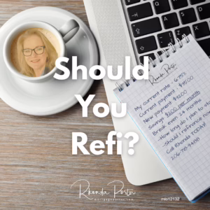 If you’d like a personalized refinance review, reach out to me anytime. I provide my clients with a side-by-side comparison of their current mortgage to other possible scenarios based on current pricing to help you make an informed decision – including if it’s not the time to refi quite yet.